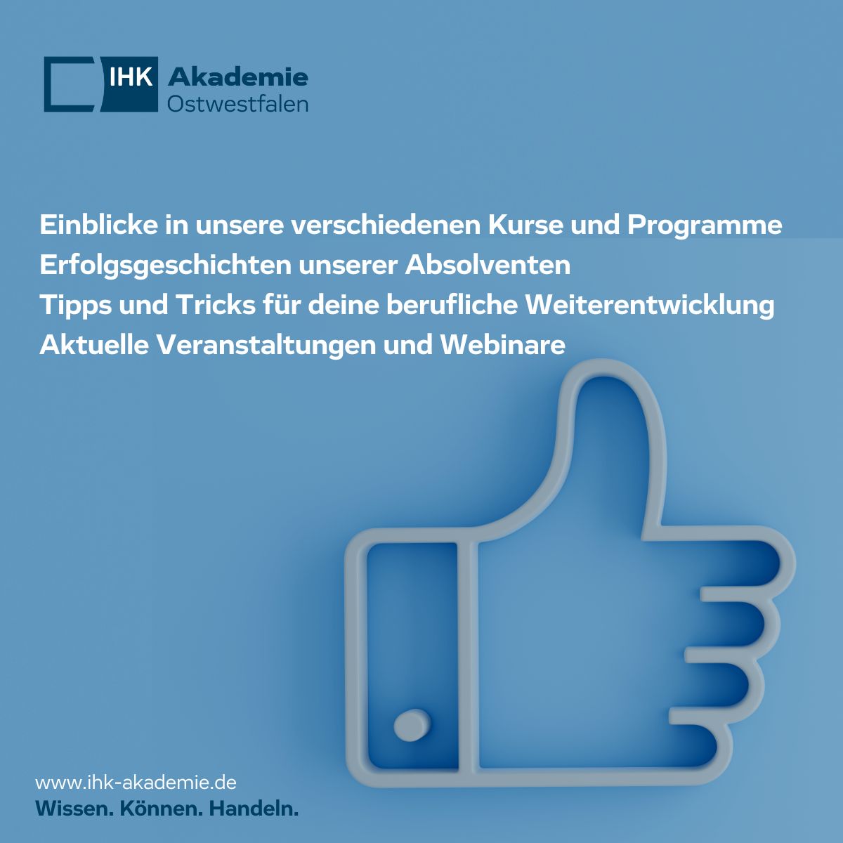 Immer auf dem aktuellsten Stand sein, Insides erhalten und vieles mehr – dann gilt es, der IHK-Akademie Ostwestfalen bei LinkedIn …