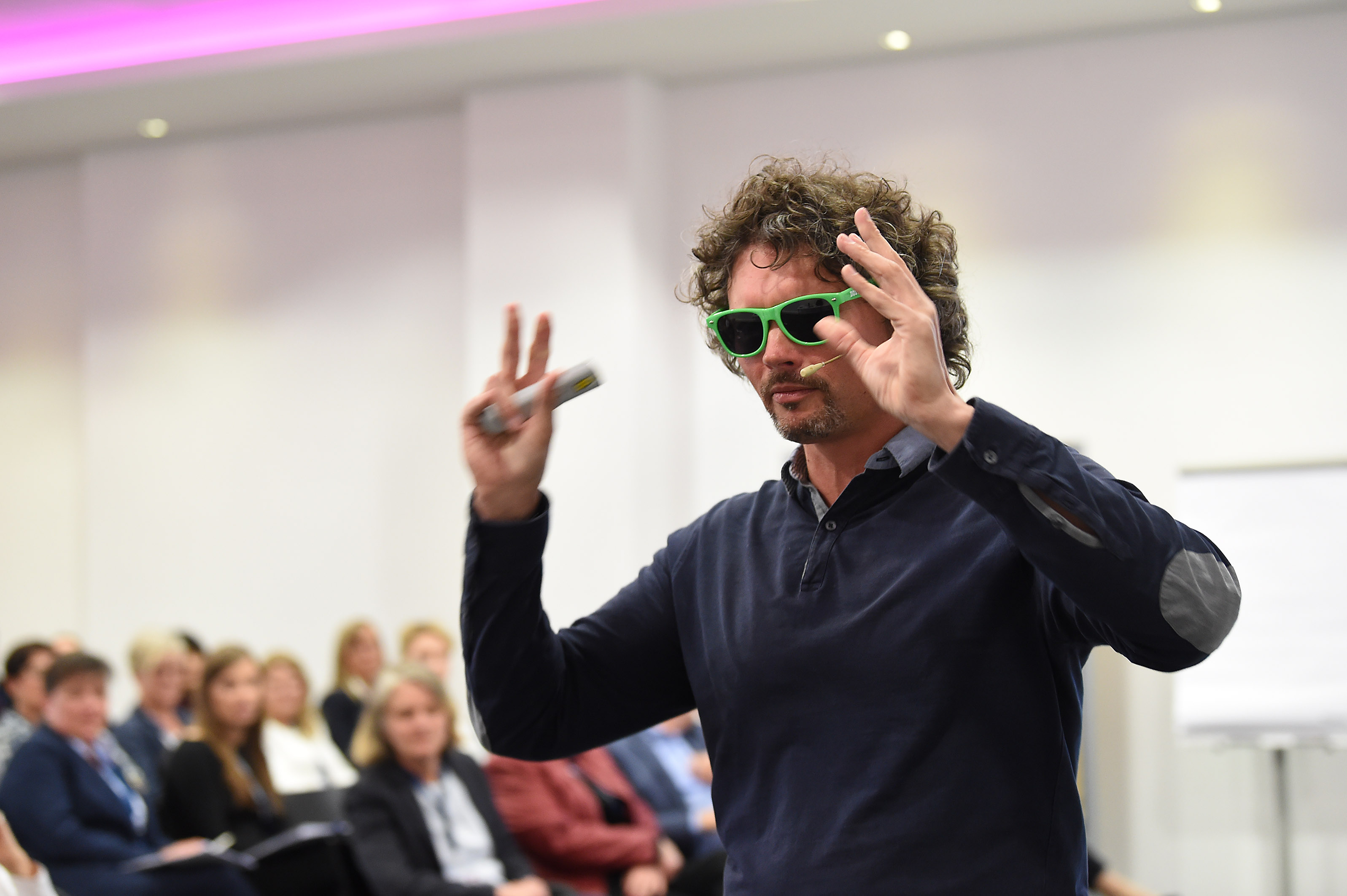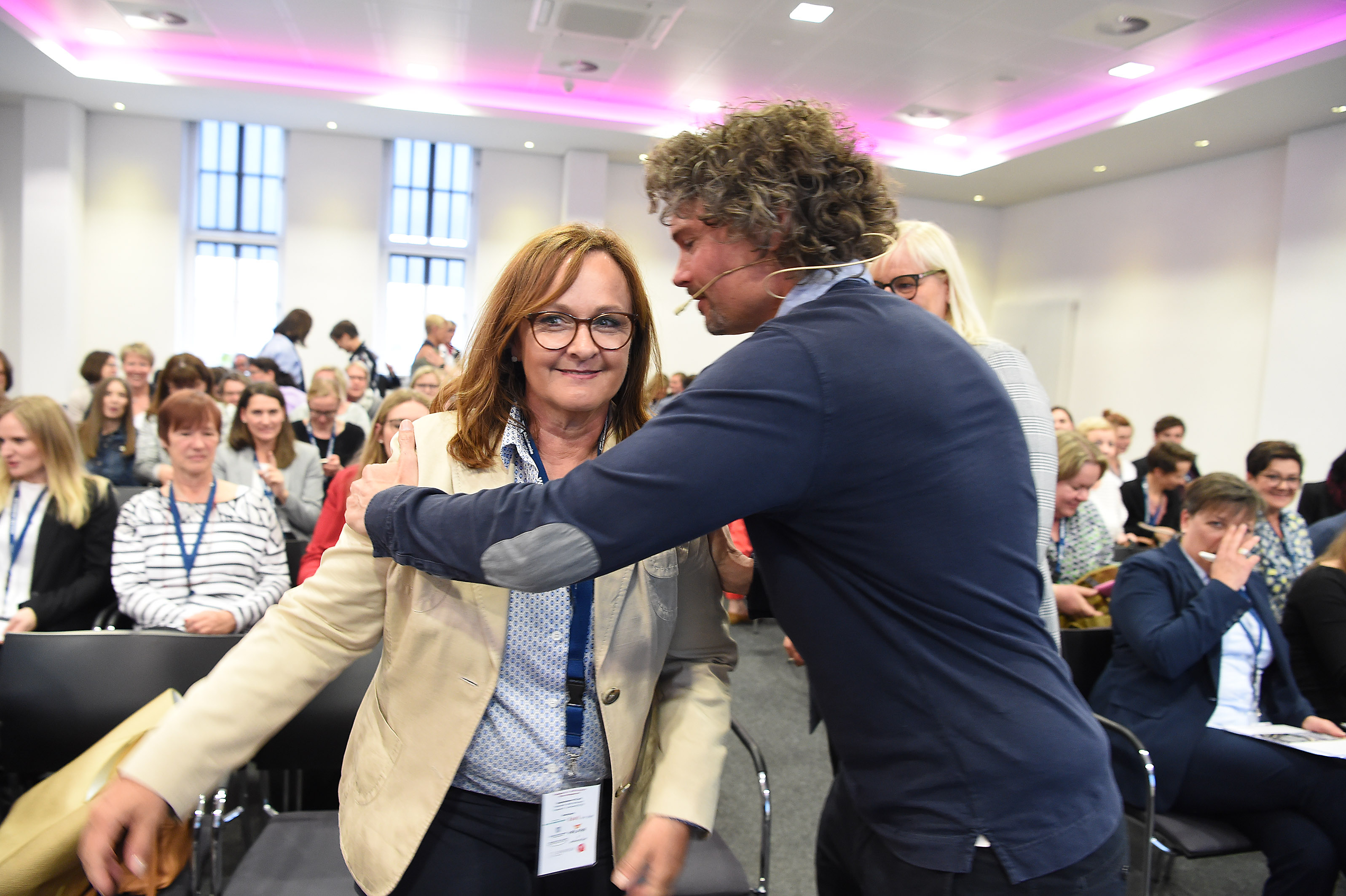Zur angeregten, fröhlichen Stimmung unter den Teilnehmenden des 1. IHK-Kongresses für Office-Management trug nicht zuletzt der Mann bei, dessen Stimme vielen Menschen bekannter ist, als sein sympathisches Gesicht. Die Rede ist von Patrick Linke, der Stimme aus dem Off bei „Let’s dance“. Mit viel Witz und Charme führte er durch das Programm.