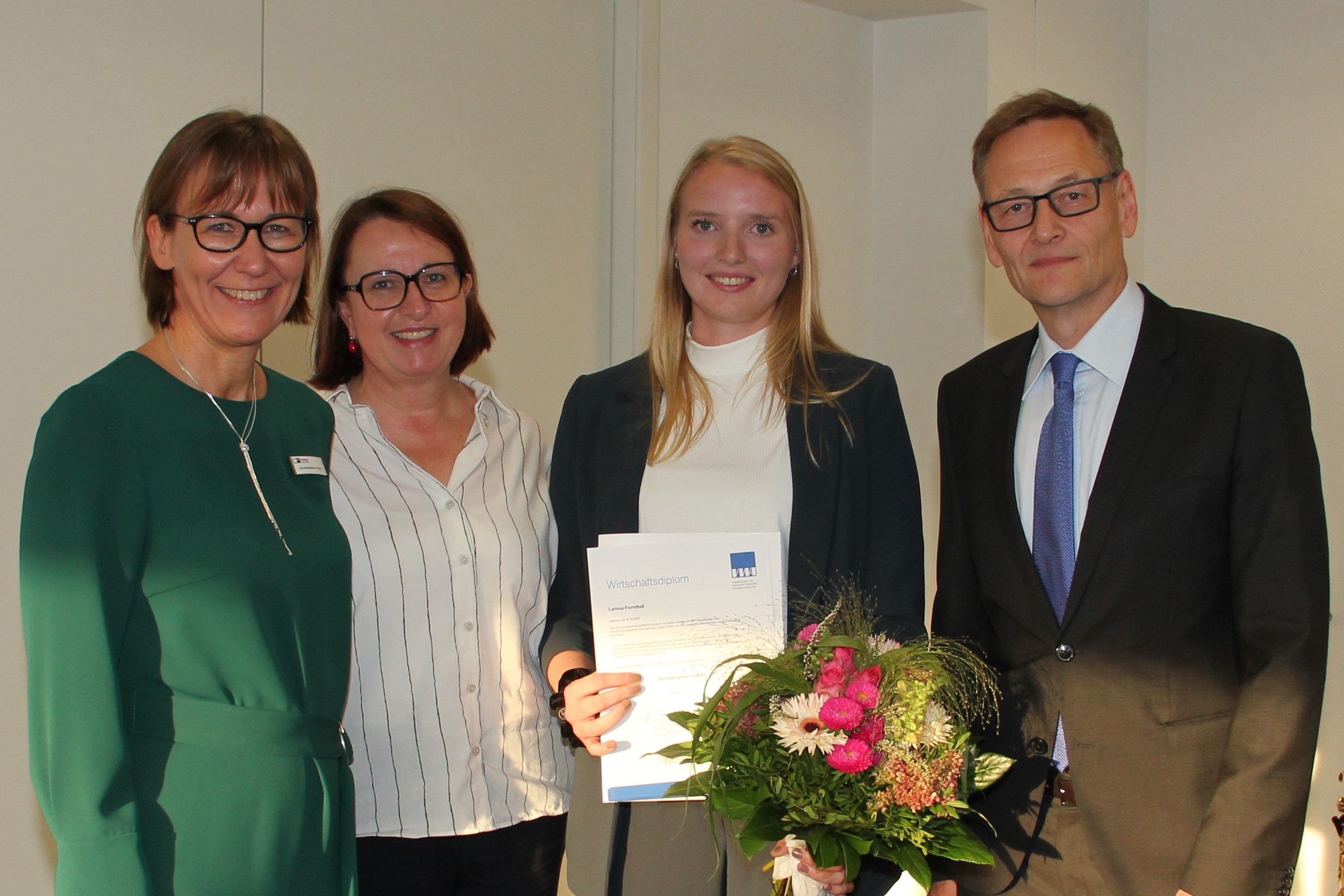 VWA-Studienleiter Prof. Dr. Hermann Jahnke lobte das hohe Leistungsniveau des Studienganges und wies auf die steigende Nachfrage nach praxisorientierten dualen Studiengängen hin: „Wir verlangen sehr viel von unseren Studierenden. Der Erfolg unserer Absolventen zeigt, dass der richtige Weg eingeschlagen wurde. Praxisbezug und sofortige Einsetzbarkeit im Unternehmen machen für viele Arbeitgeber den besonderen Charme unseres Studienmodells aus. Die Absolventen werden exzellent auf die beruflichen Herausforderungen in der Praxis vorbereitet.“